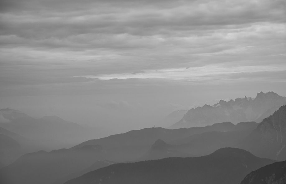 Arrivée au refuge Auronzo, la face nous domine, immense, minérale, vaste escalier semblable à une tour de Babel. Elle vous absorbe, à tel point qu’il est impossible de l’observer dans son intégralité. On est loin de la photo traditionnelle aux trois cimes se découpant dans l’azur. Le géant est sans concession, il asphyxie l’espace, au point de cacher le soleil.